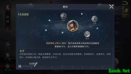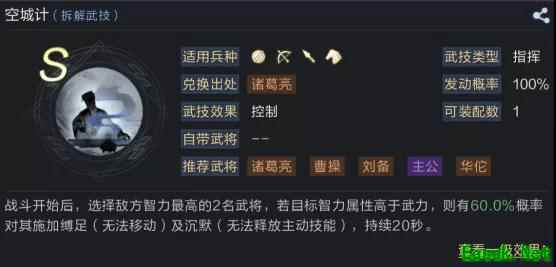 技能二【空城计】 这个技能针对智力队非常适用。指挥技能可以百分百发动,长达20秒的缚足和沉默效果在得不到净化的情况下非常恐怖。 通过这样搭配,队伍会不再受后置技能触发几率限制,并且队伍本身拥有不低的输出下限。而在这个前提下,还可依靠周瑜和陆逊的武技来尝试打出更多输出,技能之间的搭配十分稳定。 以上就是小编整理关于《鸿图之下》陆逊阵容搭配推荐的全部内容,想知道更多相关资讯攻略的请关注易采游戏网。 本文内容来源于互联网,如有侵权请联系删除。 |