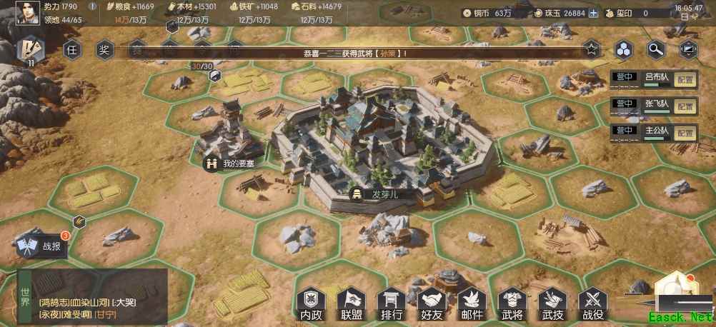 《鸿图之下》藏宝图使用攻略【藏宝图如何使用】 1、打开游戏主菜单,点击【内政】 2、点击【仓库】 3、找到【藏宝图】,单击它即可使用