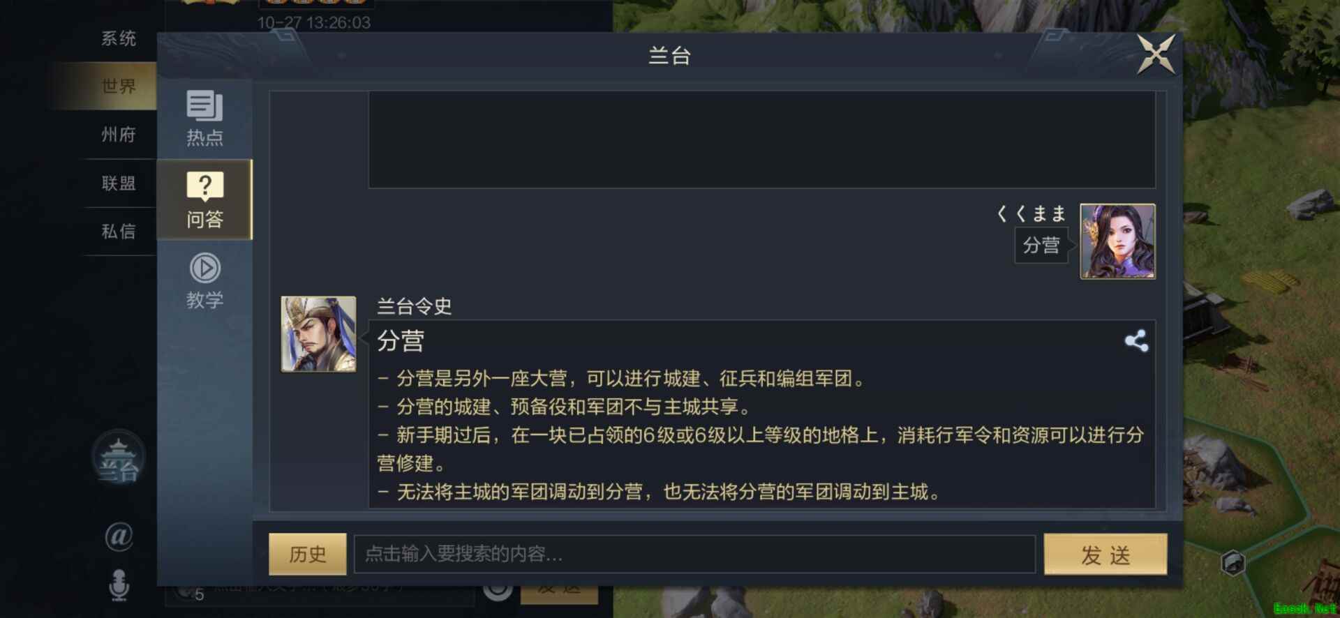 《鸿图之下》分营作用介绍一、分营作用 【分营】是鸿图之下中相当于第二主基地一样的建筑,可以进行城建、征兵和编组军团。需要注意的是分营的城建、预备役和军团不与主城共享,且无法互相调动。每个玩家只能有一个分营。