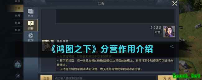 《鸿图之下》游戏中分营有什么作用?分营作为游戏中一个非常重要的建筑,可以帮助玩家提升一定数量的势力值,很多小伙伴还不知道分营到底有什么作用,那么接下来小编为大家带来《鸿图之下》分营作用介绍,一起来看看吧。