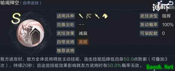 该队伍拥有不错的进攻加成和减防输出链,但励军给予的恢复能力在前期收益较低,所以并不推荐用于开荒,队伍更适合于中期交战。这只队伍在中期各位主公都处于7本到8本时效果会更好,当然用于打地也有不错的强度,可以穿9级地。 二、搭配思路 该阵容搭配核心是以高顺的拆解武技为出发点,该武技可以让输出偏低的步兵系武将得到不错的提升效果,同时全队自带励军,有更多空间搭配输出技能。高顺的自带武技可以降低敌方武技带来的队伍增益,同时让敌方武将释放技能后被减防,可以说是步兵队必备搭配核心。