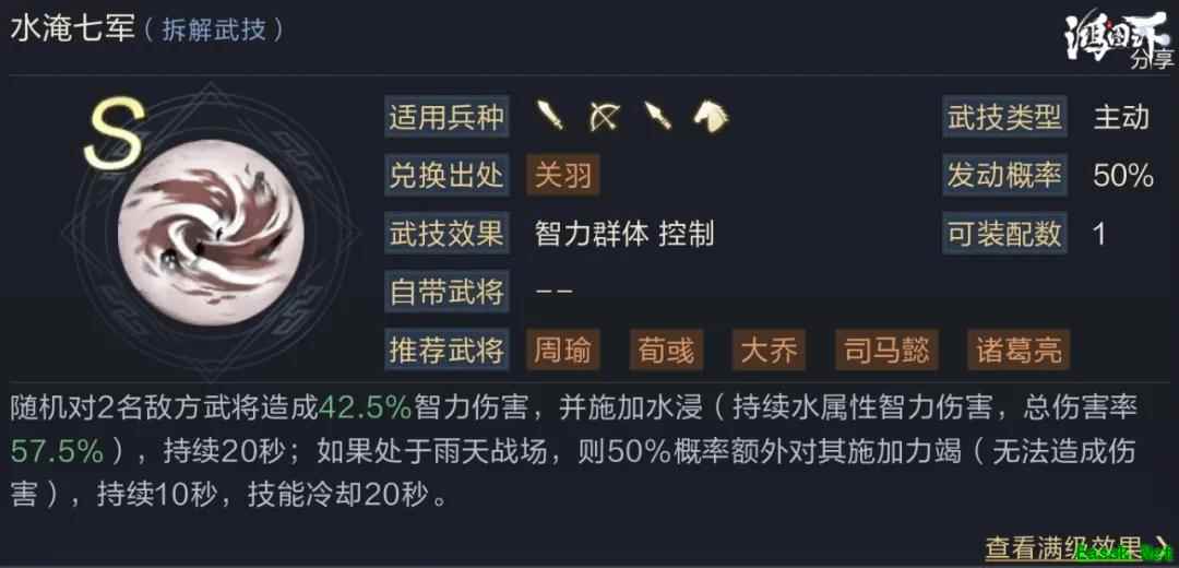 这个技能因为有几率给自己施加力竭,所以拥有超高的伤害,而且在雨天,甘宁免控也不会受到力竭的干扰了。 如果有完整水鬼队伍的玩家,需要注意的是:程普的指挥技能是0-10秒、20-30秒,每隔10秒触发一次。