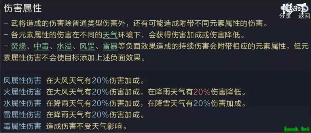 元素属性伤害天气加成一览一、天气系统的影响 主公们可能没有注意到,鸿图之下的天气系统是对战斗有影响的!
