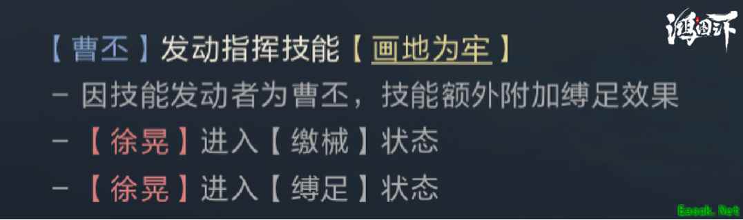 5.【缚足】 比较针对近战类兵种,一般属于开局释放。可以用于开局限制敌方前排的移动,从而使后排的主将或其他重要角色成为我方优先攻击的目标,为我方创造出3打2甚至3打1的优势。