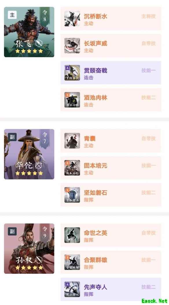 《鸿图之下》S2核心武将阵容搭配推荐一、张飞 张飞作为最早被开发出的合聚主将之一,在S1中凭借个人超强的爆发能力称霸一时,甚至不需要副将为其提供加成,是首个真正意义上1带2的猛将。 虽然在赛季后期出现了各种增益套路和减伤套路,张飞的生存环境有所削减,但他仍然是桃园、蜀枪、合聚爆头、合聚连击的核心人物,也是开荒时期最佳的输出角色之一。 张飞目前在S2的主流搭配仍然是势如破竹+抬棺决战或贯颐奋戟+酒池肉林,分别对应主动队伍和连击队伍,当前版本主流趋势主要围绕开局爆发和防御保护,张飞在交战中的表现没有以前那么强力。 但打地阵容依旧稳定,无论是合聚连击还是蜀枪连击,都是可以穿10的队伍配置。