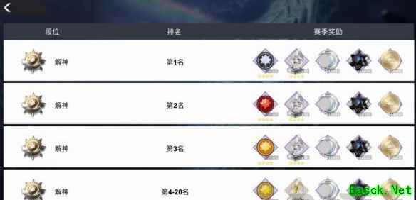 在赛季结束后会根据达到的段位获得相应的奖励,甚至还有专属的赛季徽章!听说在佩戴这些徽章时能够获得些许在抗争时传承下来的力量,不知道会是怎么样的,解神者大人敬请期待呀!届时将会有排行榜显示解神者大人的段位、排名。并且在使用单神格通关时,也将会有这位神格的独立排名!
