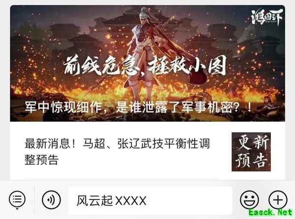 活动期间,获得完整且正确接头暗号,并发送至《鸿图之下》公众号后台的主公,即可进入领奖页面领取武技点*500、铜币*2888,更有机会随机获得18-888珠玉哦! 发送格式:风云起XXXX 正确接头暗号:风云起共战鸿图 以上就是《鸿图之下》暗号玩法介绍,更多游戏攻略请持续关注易采游戏网! 本文内容来源于互联网,如有侵权请联系删除。 |
