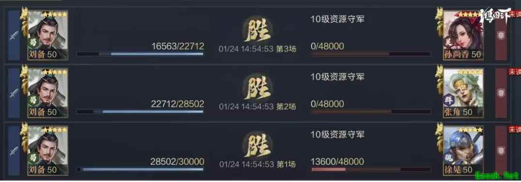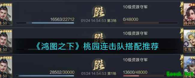 《鸿图之下》桃园连击队搭配推荐一、阵容配置 桃园队在前期时走主动路线表现会更优秀,但到了中后期,高等级的武将在使用连击技能时会比主动技能具备更多的触发机会,同时各种减伤技能的增加也让主动队的伤害能力被进一步限制。 所以在后期转为连击路线能让桃园队保持良好的战斗能力,队伍整体爆发时期在前30秒昭烈有效期内,最理想的状态是目标承受怒目退敌+贯颐奋戟的效果后再受到张飞拊背奇袭的攻击,伤害非常可观。 二、搭配思路 桃园队改造连击队最大的难点在于关羽的属性和刘备的定位,首先关羽的攻速成长较低,其实并不特别适合走连击路线,在队伍中更符合前排副C的打法,主要在前排承伤并施加状态效果。而刘备要么选择主打团队恢复,要么主打Buff提供。 必要情况下也可以牺牲关羽的输出空间,让关羽来配置先声夺人,刘备多带一个恢复武技,只要保证张飞的输出环境和贯颐奋戟、怒目退敌这两个主要状态武技即可。 目前交战中的主流大多为开局爆发或沉默盾法队,桃园转连击路线不但可以更好的适应环境,打地时穿10的能力也比主动路线的桃园队稳定得多。 昭烈可在开局为张飞、关羽提供25%的减伤和增伤,通过怒目退敌+贯颐奋戟的效果能够让关羽的酒池肉林和张飞的拊背奇袭都打出高额伤害,以此增加关羽的兵力恢复和张飞的输出。 并且关羽、张飞2人的自带武技都拥有非常不错的控制效果,缴械、力竭的适用范围都比较广,如果追求队伍伤害的话也可以将主将更换为张飞。 三、技能配置 1.刘备 队伍Buff工具人,担任主将能提供不错的闪避、恢复效果,增强队伍续航能力。 1号武技推荐坚如磐石,可为己方全体提供100点防御加成,并且自身免疫暴击。在面对单核队伍时可让刘备去侧翼承受伤害,让张飞与关羽集火敌方主将。 2号武技推荐先声夺人,双核连击的主要提升点。在触发连击技能时能为张飞和关羽提供非常高的武力加成与防御加成,同时降低敌方属性,收益非常不错。 2.张飞 队伍核心输出,能在短时间内造成高额的伤害输出。 1号武技推荐怒目退敌,能够让当前目标降低100点防御并对其造成190%的武力伤害,配合先声夺人可增强实际造成的伤害值,对其他技能的输出效果也有非常高的提升。 2号武技推荐拊背奇袭,拊背奇袭前几次的自我伤害提升非常高,即使是没有贯颐奋戟和怒目退敌的加成时,也能通过先声夺人提升一定的伤害,前期爆发的主要来源。 3.关羽 队伍副输出点,坦度比张飞更高,输出能力也非常不错。 1号武技推荐贯颐奋戟,能够增强队伍中其他技能的实际武力伤害,能够增加酒池肉林的励军收益,非常实用的连击技能。 2号武技推荐酒池肉林,一般酒池肉林搭配怒目退敌时收益会更高,但考虑关羽的承伤定位,这个武技给关羽会更适合一些,而且配合贯颐奋戟其实也可以达到收益增强的效果,是保证关羽输出与续航的重要技能。 四、实战效果