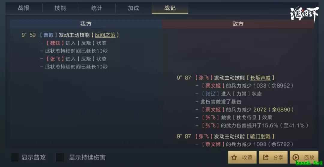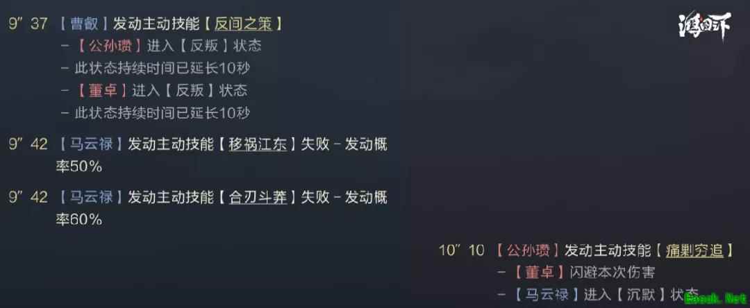 这里为大家解释一下该技能的设定,被施加反叛的武将在攻击其友方目标时,会正常计算他的属性与附带的效果,我们在战斗中只能看到该武技的触发次数,被技能所影响的目标技能造成的伤害会计算到对应技能的数据里。