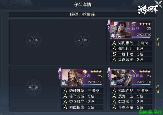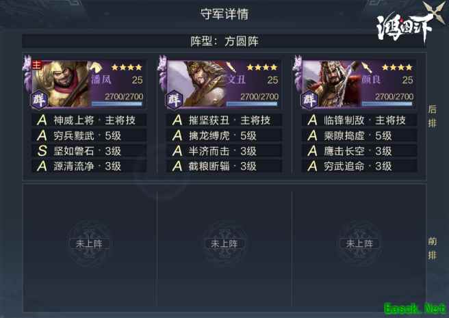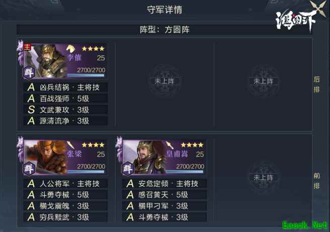 五级地的难度并非守军太强,而是此时的我们受限较多,空有满编能力却无法发挥,所以利用站位优势可以显著降低打地的难度。 图中站位以飞狗队(张飞、荀彧、主公)为示例,前排站位为主公,后排站位为张飞与荀彧(特殊情况下坦度最低的荀彧会单独站位,规避战损),五级地的主要难度参考在于敌方主将站位(爆头难度),敌方主将技能两方面,技能克制需根据个人开荒队的情况为准。 以上就是小编整理关于《鸿图之下》五级地守军介绍的全部内容,想知道更多相关资讯攻略的请关注易采游戏网。 本文内容来源于互联网,如有侵权请联系删除。 |