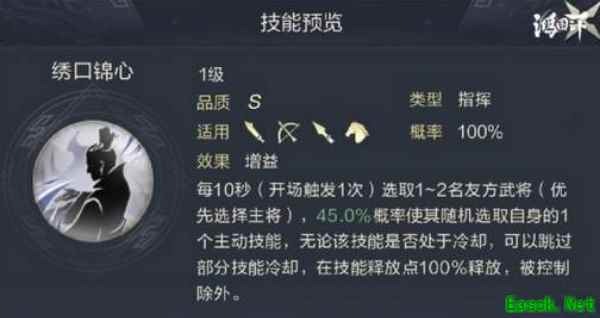 简雍武将介绍【武将介绍】 定位:辅助增益类、减少时间冷却 小贴士:切记指挥类技能无法驱散、无法沉默、开场释放,但是当武将战亡后,此指挥类技能增益或减益效果无法生效 1、能减少友方2名武将随机主动技能的10秒时间,无论友方武将技能是否在冷却,都可跳过此冷却时间,除非俩名友方武将被控,无法释放主动技能 2、施加的这种状态效果无法被十胜十败、孤注一掷、横甲刁军等驱散