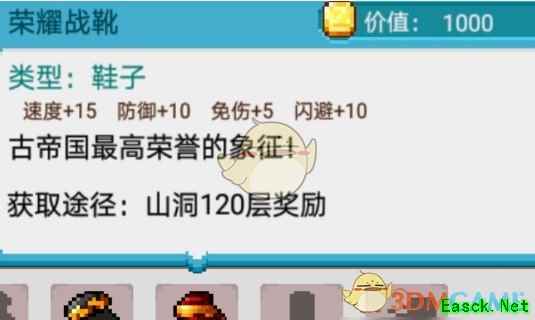 荣耀战靴获得方法介绍: 价值:1000 类型:鞋子 速度+15 防御+10 免伤+5 闪避+10 装备介绍:古帝国最高荣誉的象征! 获取途径:山洞120层奖励