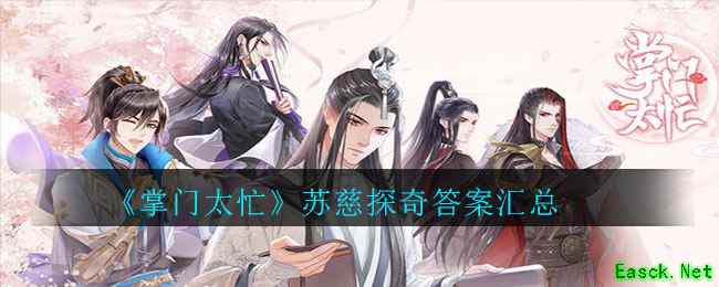 在掌门太忙中,为每一位掌门都准备了一套探奇问答哦,非常考验大家对他们的熟悉程度的呢,大家都知道这些题目的答案是什么吗?下面小编就来为大家介绍一下掌门太忙苏慈探奇问答全部答案吧。
