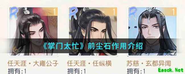 在掌门太忙手游中前尘石有什么用呢?前尘石是不是前尘往事的石头,那么具体有什么做用呢?想知道前尘石作用的就跟随小编一起来看看吧。