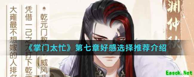 在掌门太忙手游中第七章好感怎么选择呢?本章节的好感选择主要是苏慈,那么该怎么选择比较好呢?想知道第七章好感选择推荐的就跟随小编一起来看看吧。