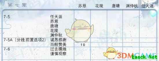 7-5除了任天涯以外(可能),选其他角色会进入角色剧情 其实只要按照坊坊之前在上上一条分析的男主性格来做鸽坊选项,加的好感都不会差的,波动不会超过五个点。 以上就是小编整理的掌门太忙第七章好感选择推荐介绍,想知道更多相关资讯攻略的请关注易采游戏网。 本文内容来源于互联网,如有侵权请联系删除。 |