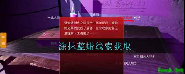 《孙美琪疑案:兰芝》4级线索——涂抹蓝蜡涂抹蓝蜡:这不是一个直接可以获得的线索,需要关联五级线索【蓝蜡】和四级线索【蜡烛】获得 线索详情蓝蜡遇到火之后会产生化学反应,蜡烛的光果然变成了蓝色。这个现象完全无法理解,太奇怪了。 >>>>《孙美琪疑案:兰芝》全线索信息汇总大全
