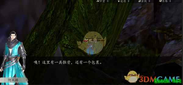 少侠再细心些,会发现佛像下有个窟窿,钻进去可以看到一具尸骸和一个包裹。