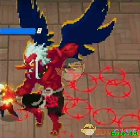 4、大天狗的小技能是重锤地面召唤出三个岩石,成一排出现,岩石可以催货,如果长时间不去催毁岩石就发生爆炸,我们可以通过岩石的颜色来看出它还有多少时间爆炸,爆炸攻击范围伤害极大。 5、大天狗的另一个小技能是,飞起来然后地上出现大量的红标跟踪我们的角色的位置,需要快速移动或者使用位移技能才可以躲开,伤害虽然不高但是很密集。 6、大天狗的大招是一跃而起,地上会出现一个巨大的红标,2秒左右后落下,产生超大范围的爆炸伤害,伤害极高,并且可以给击中的单位附近点燃效果,持续扣血,技能释放过后会进入虚弱状态在地上跪3秒,这个时候普攻不能对她造成伤害,但是技能可以。