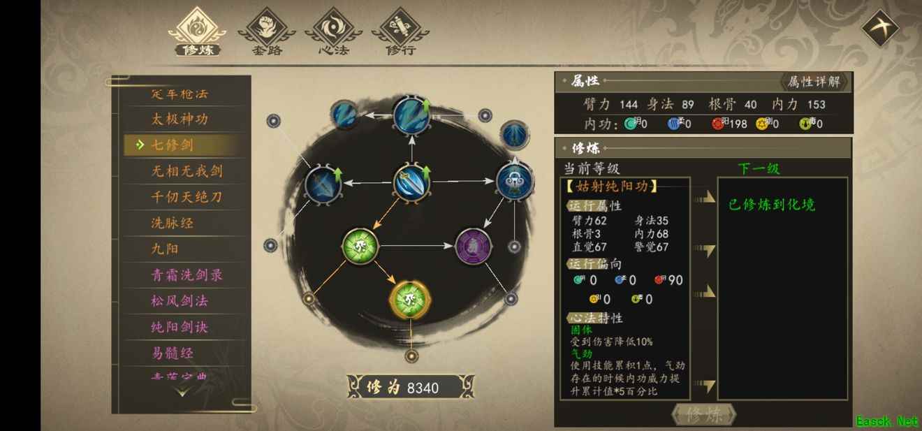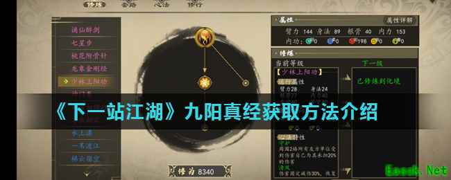 《下一站江湖》九阳真经获取方法介绍1、需获取三种功法满级,悟性达到90。
