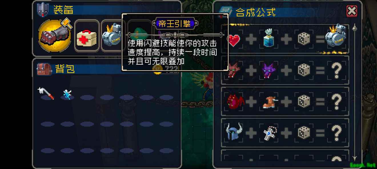 帝王引擎 红心+肾上腺素(?)=帝王引擎 这个描述也是把我惊到了,不仅触发条件简单,还能无限叠加(虽然只有一段时间),这不是权姐幻影流的福音吗? 此道具适合持续输出+莽的玩家使用,首推道具组合当然是 德古拉的假牙 了(站桩必备)。实用性高,建议合成。