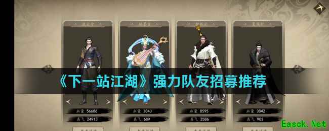 《下一站江湖》游戏中强力队友有哪些?游戏中专属的伙伴系统,玩家可以招募伙伴来加入自己的队伍大大提升自己的战斗力,很多小伙伴表示游戏中有哪些强力的队友,那么接下来小编为大家带来《下一站江湖》强力队友招募推荐,一起来看看吧。