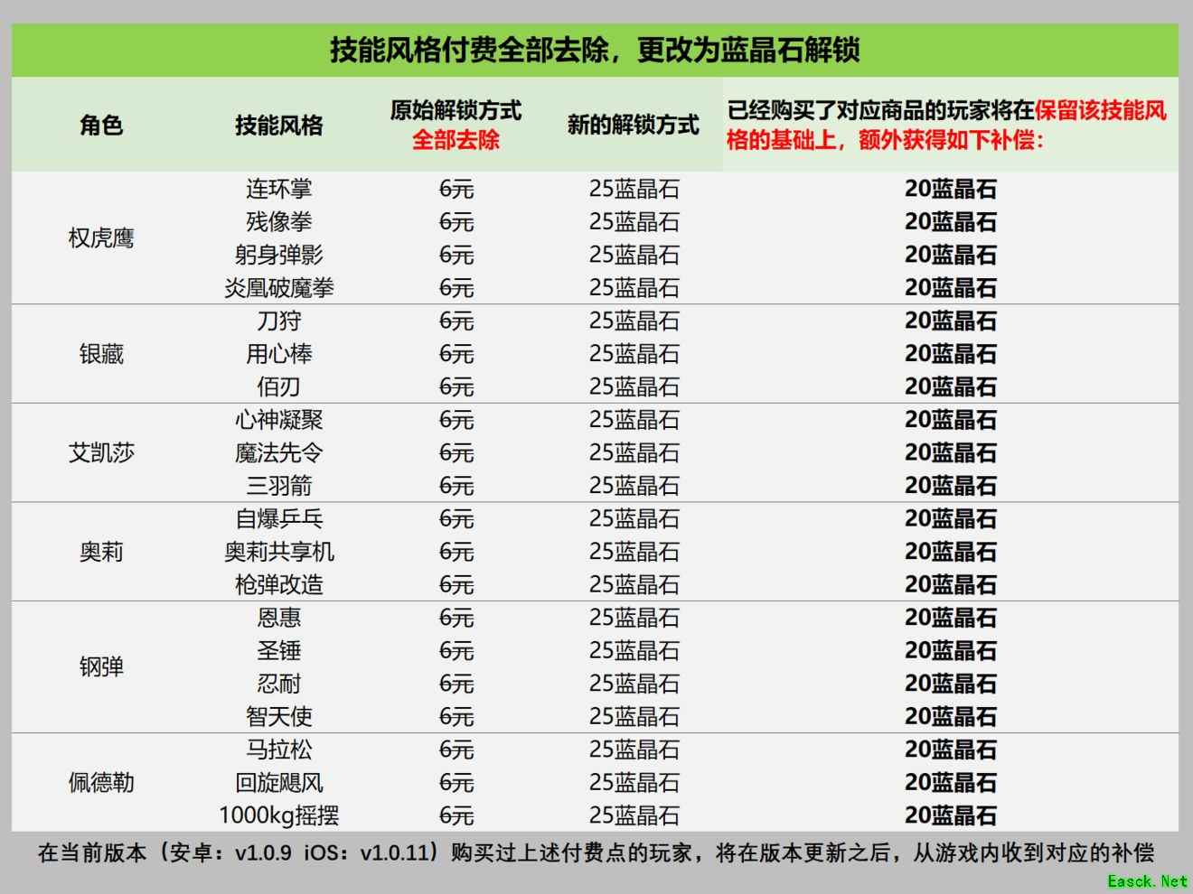 技能风格付费将在下个版本全部去除,更改为蓝晶石解锁(蓝晶石可以在战斗结算时获取)。 【改变技能获取方式】
