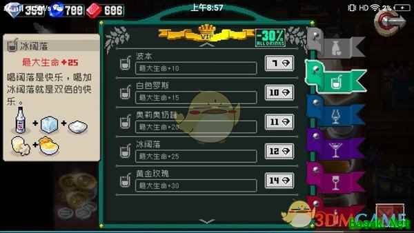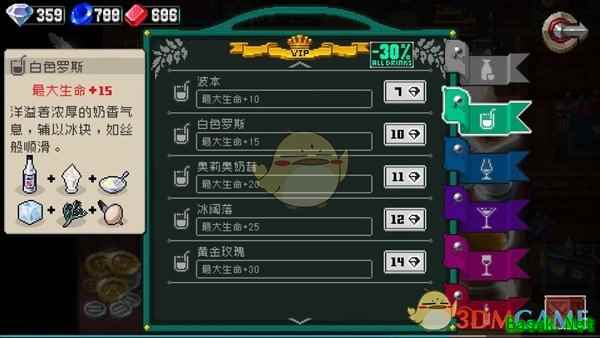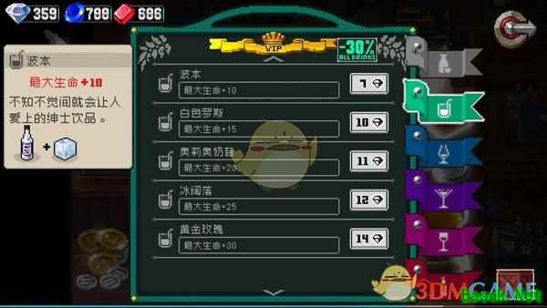 1、白色饮品 白色饮品的加成为移速 2、绿色饮品 绿色饮品的加成为增加最大生命值 3、蓝色饮品 蓝色饮品的加成为额外获取金币 4、紫色饮品 紫色饮品的加成为增加精英和领主受到的伤害 5、粉色饮品 粉色饮品的加成为增加暴击伤害 6、红色饮品 红色饮品的加成为伤害减免 波本