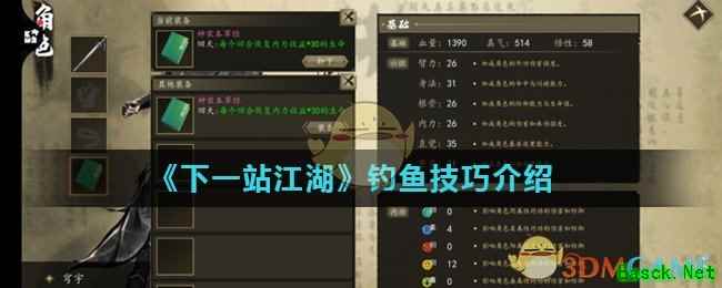 《下一站江湖》钓鱼技巧介绍1、在游戏中,玩家首先需要购买鱼竿才能钓鱼,当然购买鱼竿后别忘了还需要鱼饵才能成功钓到大鱼。