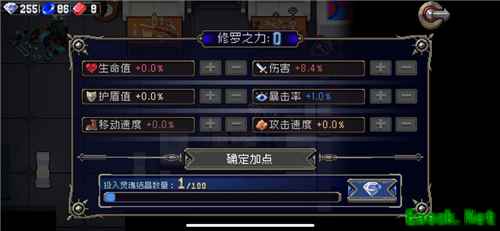 注意这个属性的加成,上面显示加多少就是多少,而是根据角色当前属性的百分比进行加成的。比如你的暴击率是10%,如果加点了5%的暴击率,不是15%而是10.5%,这是相乘来算的。