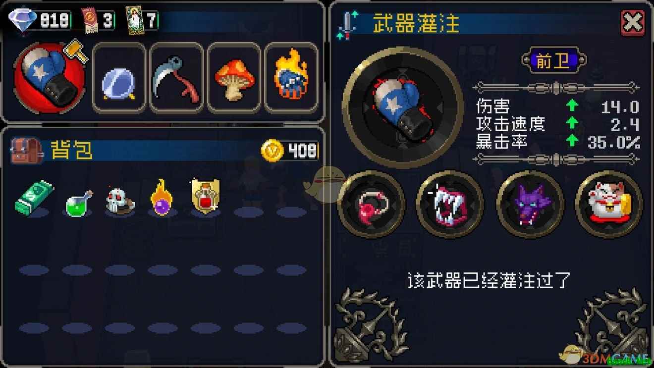 《战魂铭人》道具使用细节技巧分享1、商店打折卡,复活蘑菇 不用佩戴就可以生效。 指南针可以进入新场景后,装备一下就可以获得视野,不用一直装备。 2、护盾增多:护盾增多道具可以装备再卸下,能够直接恢复大半护盾 3、血量增多:上同道理,可以套血 4、血换盾,盾换血道具:这两个道具也可反复拆卸去直接恢复一段。 血换盾可以拆下来喝个血瓶再装上,就不用那个仿生盾道具(血瓶可以恢复护盾)了 5、打小怪关,镰刀可以比拟吸血道具,在传说怪多的情况下,可以把血从90打增加到120都可以。 ps:道具描述没说,增加上限是有几率,并非必要。 6、商店老板:打第一第二下会涨价,第三下会破盾收商品开始打架。 无论打s打不s,后面都不会营业了。 7、进入游戏第一关卡1-1,向下或右,大几率遇到开箱房间,此时开出三槽位武器几率最大基本。所以如果没有开到,可以反复重开,这样保证开局神装稳的一p。