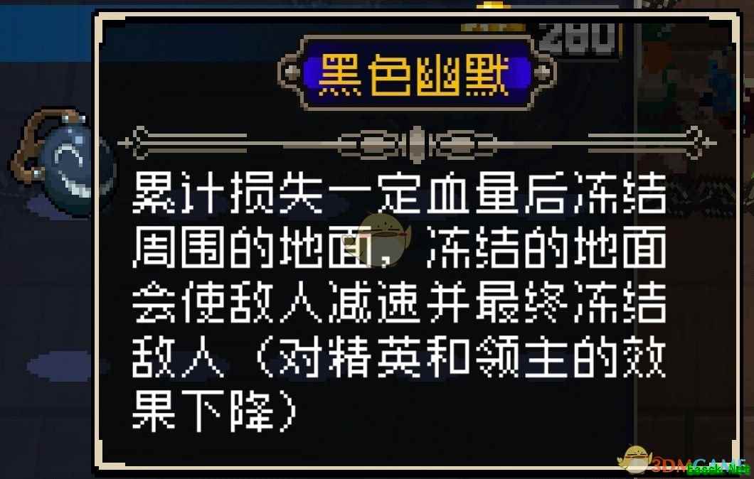 《战魂铭人》黑色幽默强度评测1、钢蛋骑士或者权姐跟这个挺搭,毕竟血厚一点有这个资本去掉血。 2、搭配镰刀还有吸血装备也许是个不错的选择。 3、对于敏捷度BOSS就建议不要用了,冰冻需要一个时间,太敏捷了根本冻不住。