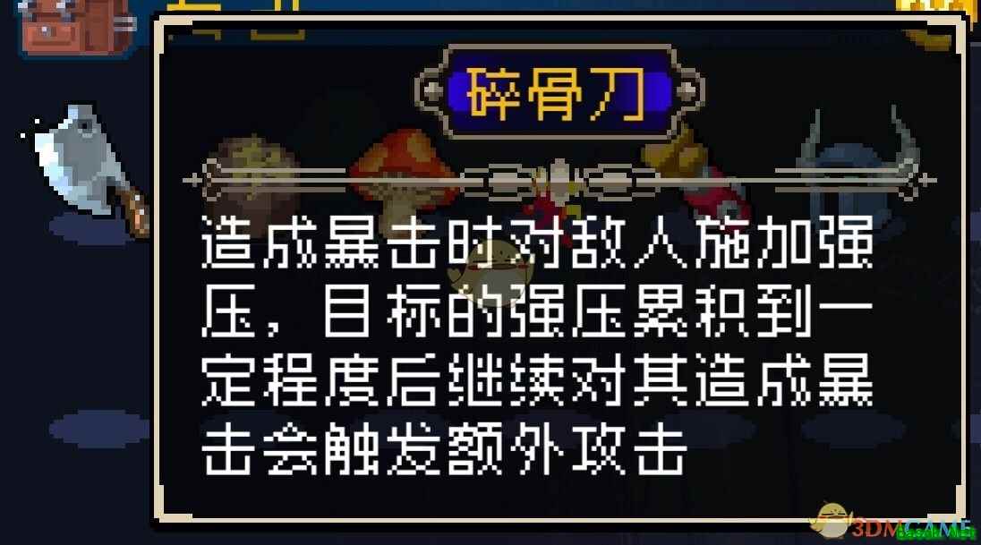 《战魂铭人》游戏中碎骨刀强不强?游戏中除了固定的合成道具之外,还有很多随机合成道具,而且随机合成道具也是游戏中非常重要的一部分,其中碎骨刀,很多玩家表示不知道怎么使用,那么接下来小编为大家带来《战魂铭人》碎骨刀强度评测,一起来看看吧。 黑色幽默 微观星球 琥珀蒙空 金币诡雷 碎骨刀 怀表 斗魂 恶鬼面具 反氪金装备 冷饮