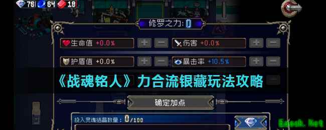 上图是我的当前修罗之力配置,大概有70点,全部分配到暴击与攻速,技能带力合,副技能带 秘剑流星。力合可以说是最强技能,但很多人只是觉得鸡肋。其实银藏的机制可以让他在一秒内瞬间打出爆炸伤害,是真的秒伤哦。(只要手速够快) 基础连招 1、普攻:单击3点伤害,单击暴击4点伤害(这里只说单击伤害,虽然很少,但是不可忽视哦,因为普攻具有追击的特效,快乐风男必备e技能) 2、后跳斩(后闪避):单击伤害5点,暴击伤害7点(重要)(伤害比普攻高一些)0.1秒免伤状态,大概可以后退两个身位,可以躲掉大部分劲战攻击。 初阶连招 1、瞬斩:普攻+后跳。只要手速快,可以在0.1秒打出灵活性极强的普通伤害8-11点伤害,两下可以秒掉普通难度下的小史莱姆。有手就行。 进阶连招 1、力合:单劈伤害35,暴击伤害53。伤害实际上非常的高,手速够快可以在。0.3秒内打出。但有较短后摇,需要用后跳斩取消后摇。 秘剑流星就不说了,直接上中阶连招:1.追击力合斩:(锁定)普攻+力合(双击):可以在0.4秒内打出38-59点伤害(有手就行) 2、瞬合:(常用)普攻+力合双击+后跳斩可以在0.4s中打出40-67点伤害。是我最常用的连招,打的小怪瓜瓜叫。 3、追击流星斩:普攻+后跳斩+秘剑流星可以在0.2s内打出33-48点伤害,且打出一秒左右的硬直时间,伤害适中但对传说难度下的生存来说是很重要的连招。