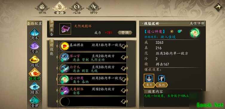 《下一站江湖》天魔神功攻略天魔大法,我愿称之为最强,不要被武功颜色蒙蔽了。 心法以九阴主,九阳、神怆,最后一个选太极最好,我没刷出张天策,用洗脉凑合了一下。 天魔解体只看血量,其他无所谓,关键是用白骨爪打出无视,接着天魔的一技能打出纳元,然后往人群里一站,自爆,血会吸回来,对面全灭。 九阴就是为了连斩。九阳和神怆是为了容错,防止翻车。最好拿个个太极神功,因为这个套路cd长,休息时候能加攻击,同时他们打你还能用太极拳反击。