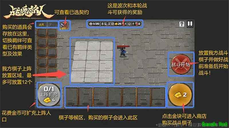 战魂自走棋玩法规则开局:玩家拥有2个金块。