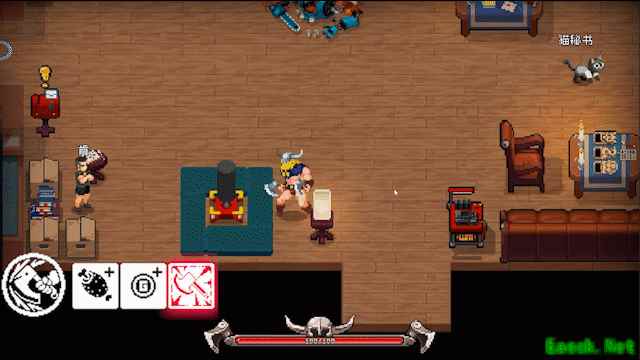 技能介绍:消耗20怒气向前发出二段斩,每次击中目标都有概率打出恢复生命值的食物和财宝!除此之外,第三风格“砍大树”有着极为强大的蓄力爆发伤害。 四技能:龙卷风摧毁养驴场 别看希尔汀体格硕大,还拿着两把巨大斧头,转起圈连现代芭蕾舞者也望尘莫及。一旦遇上成群目标,他会化为极具破坏力的人体旋风,绝不给猎物任何逃命机会。