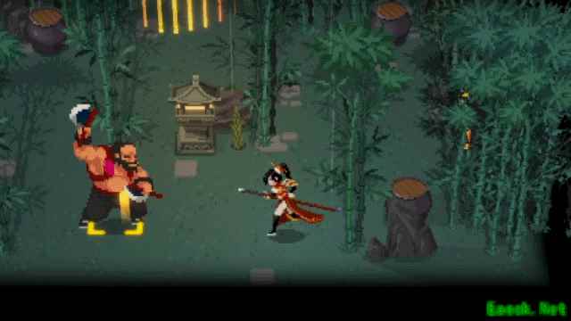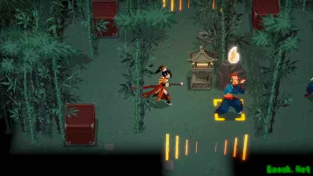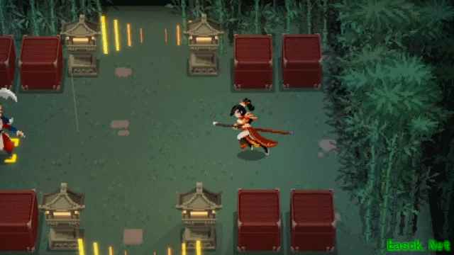 俯身向前,施展两段横砍。