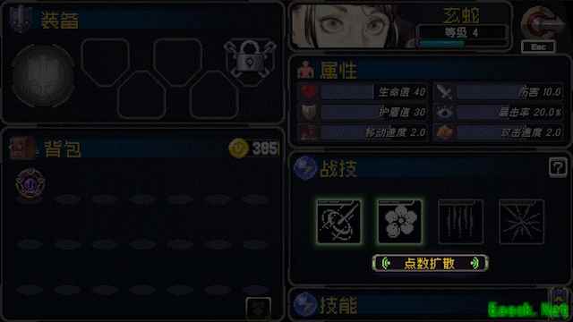尽管没有技能风格可选,但可以通过装备战技影响英雄整体的战斗。 玩家可随时进入背包界面,最多选择装备上2个战技。战技初始等级为0.无提升效果,最高等级为3.