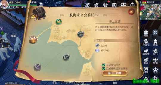 当玩家组齐队伍后即可前往附近海域进行巡航,击败附近的海盗团后即可获得一次奖励内容,与同业委托任务相同,巡航舰队全程也可选择自动寻路完成,非常方便。
