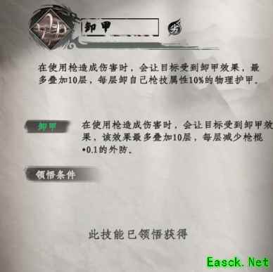 《下一站江湖2》卸甲一览:卸甲 卸甲是玩家前期通过任务可以获得的护体技能之一,适用于枪棍流派。