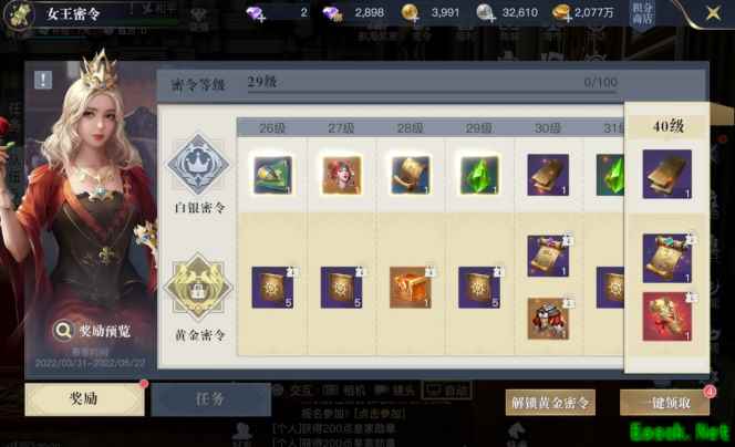 (6)黄金密令 难度系数:★☆☆☆☆ 推荐指数:★★★☆☆ 领取入口: 我们可以在游戏页面的右上角打开“密令”页面查看,每周都可以通过完成任务来领取大量珍稀好礼。