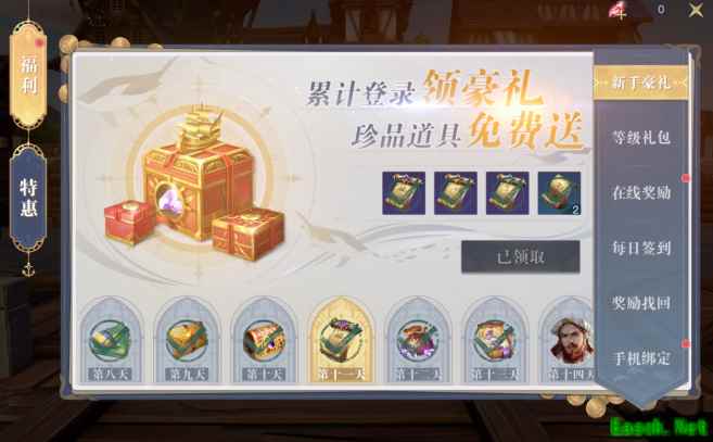 ①新手豪礼 新手豪礼是最简单的获取地中海藏宝图的途径之一。我们每次新建游戏角色都可以获得一份新手豪礼,能够连续领取十四天的丰富资源。其中第4、第8、第11天的礼包内均包含两张地中海藏宝图,非常推荐大家每日领取。