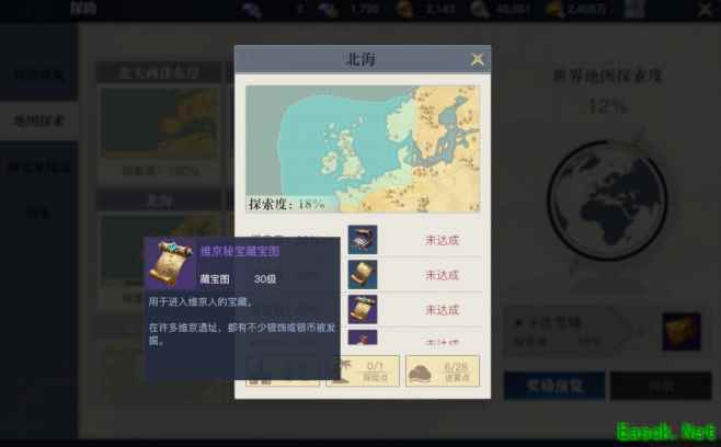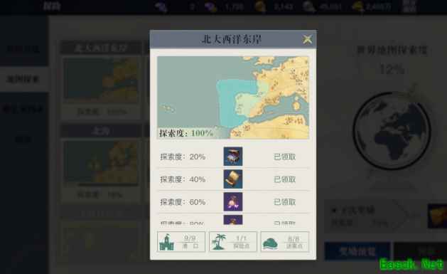 探索系统中可以领取大量地中海藏宝图,但是获取的过程较为漫长。我们每到达一个新港口、探索点及迷雾点后均可提升当前地图的探索度,每个地图累计探索度到达40%后都会奖励一张地中海藏宝图。我们可以在升级与探险的途中不断积累探索度,并领取丰富好礼。