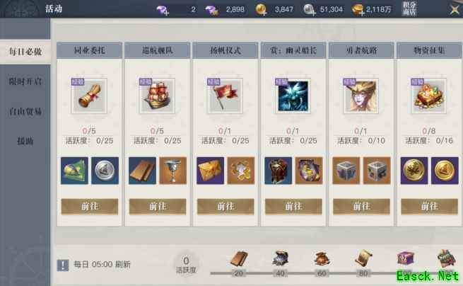 ②活跃度奖励 除了参加游戏活动之外,积累活跃度也是一种快速获得地中海藏宝图的办法。我们每日参加活动并累计获得80活跃度后,就可以领取一张地中海藏宝图。80活跃度仅需完成3-4个日常活动后便可获得,我们可以在闲暇时间完成并领取。