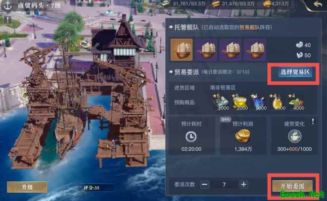 自建港商贸码头的贸易委托同样不需要我们手动操作,可以选择委派后挂机完成,推荐每日用光贸易委托的上限次数。