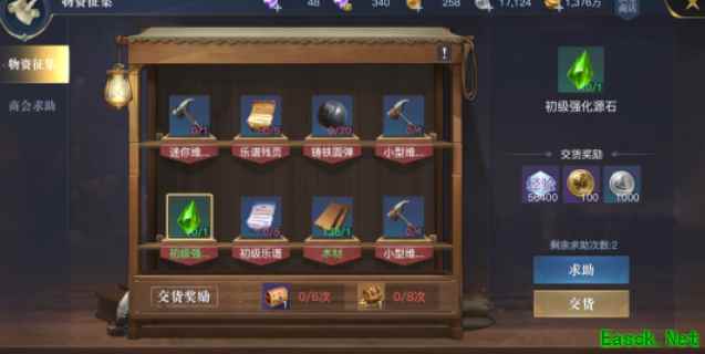 (2)物资征集 难度系数:★★★☆☆ 推荐指数:★★★★☆ 商会每天都会发布征集物资委托,完成委托后可获得大量奖励。每日的物资征集中有八件可以提交的货物,每上交一件都可以获得大量商会贡献度及银币,全部上交后还会额外获得金币、魂石等奖励。推荐大家在有指定物资时全部上交,若是物资不足,不必强行完成。