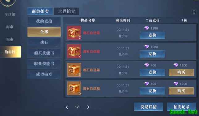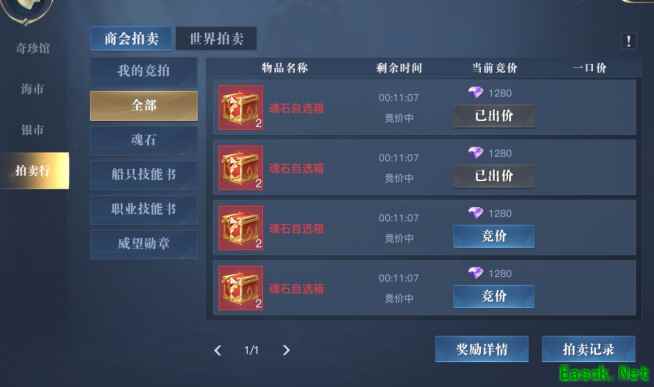 3.如何参与世界拍卖 商会拍卖结束时,所有商会在本次商会拍卖中流拍的拍品,均会自动上架至世界拍卖中。届时,达到25级的冒险家们均可在第二日的世界拍卖中挑选自己心仪的拍品,参与竞拍或是以一口价购买。