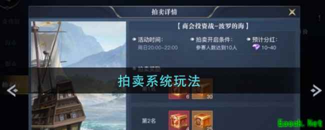 5.商会投资战-波罗的海 活动时间:周日20:00-22:00 拍卖开启条件:参赛人数达到10人 拍卖奖励:传奇魂石自选箱、史诗魂石自选箱 预计分红:10~40绑钻