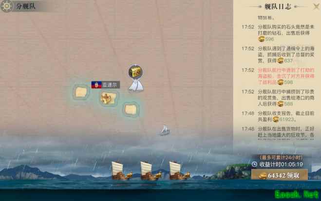 3.收益说明 启航后的分舰队处于自动贸易状态,每半小时汇报一次收益结算,最多可积累24小时的挂机收益,超过24小时后的挂机收益将不再计入。